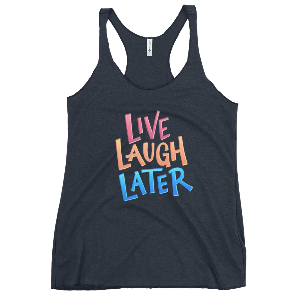 This racerback tank is for the ones who meant to be productive… eventually. “Live, laugh, later” is the unofficial slogan of every ADHD time traveler who’s always either five steps ahead or three days behind.