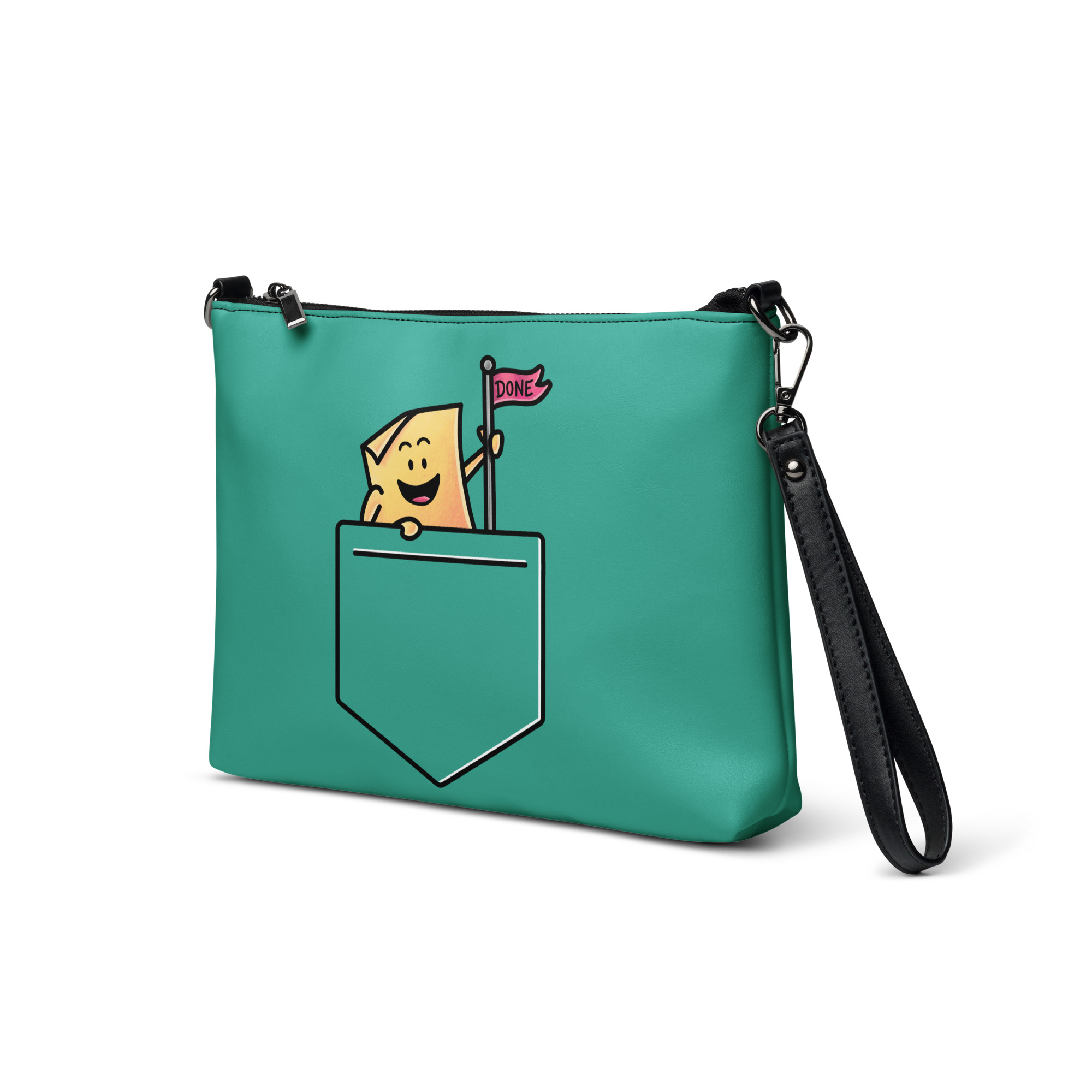 For when you need a reminder that finishing *anything* is worth celebrating. This crossbody bag features your tiny symbol of progress—The Thing, proudly holding his “Done” flag. He’s here to keep you company while you tackle life one task (or meltdown) at a time. Made from premium faux leather with dark gray hardware, it’s got a zip-top closure, interior pockets, and removable straps so you can style it however your day demands. Holds your keys, phone, emotional support lip balm, and at least two existential crises. A thoughtful, functional little sidekick for daily wins—big or small.